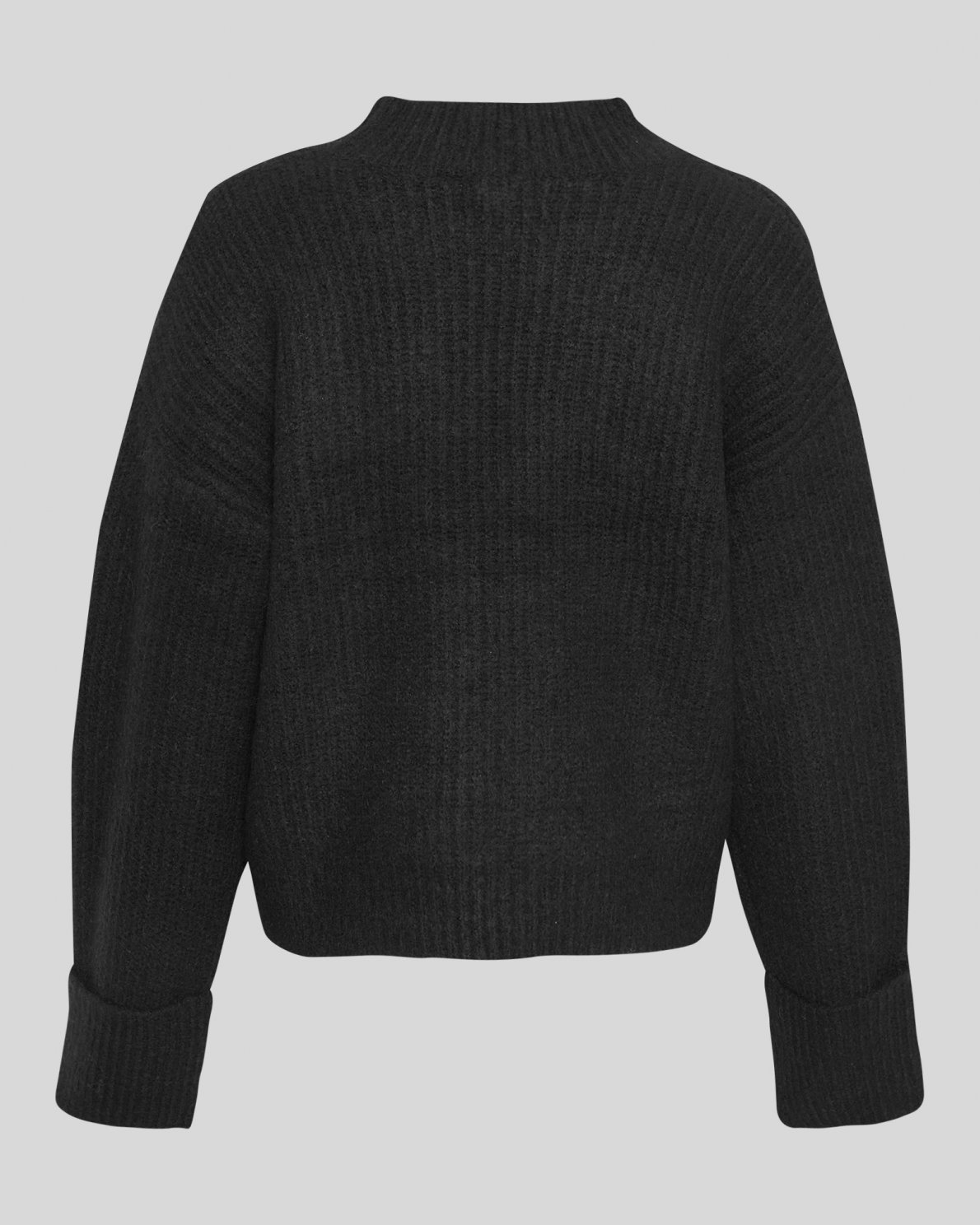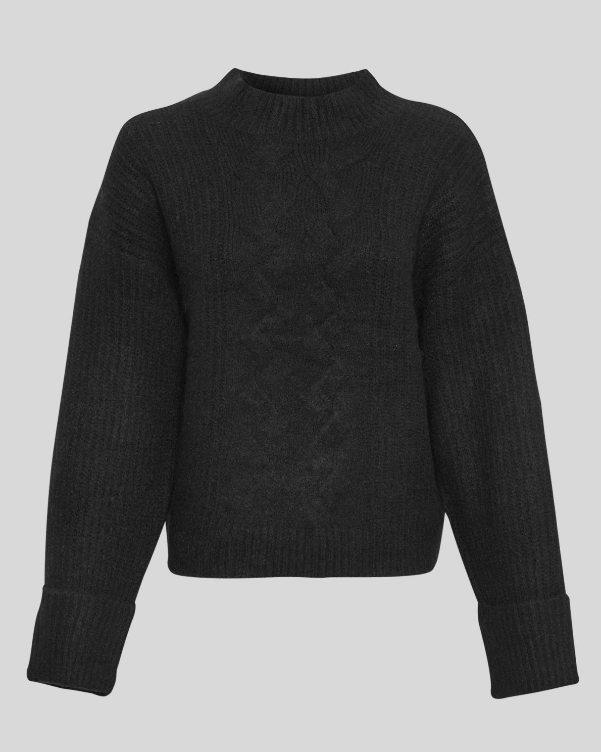 This knit has a regular fit. The model is 178cm and wears a size S.