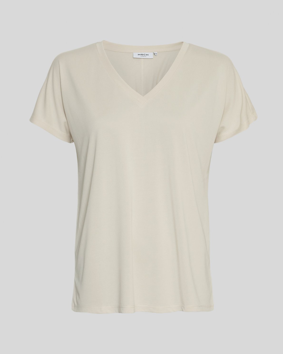 An absolute MSCH favourite, now with a V-nekcline and short sleeves. It has super soft, sandwashed modal fabric, which makes it super comfortable to wear. It goes with everything: jeans, relaxed fit pants, a cute skirt. Throw on an oversized blazer to elevate this basic tee.