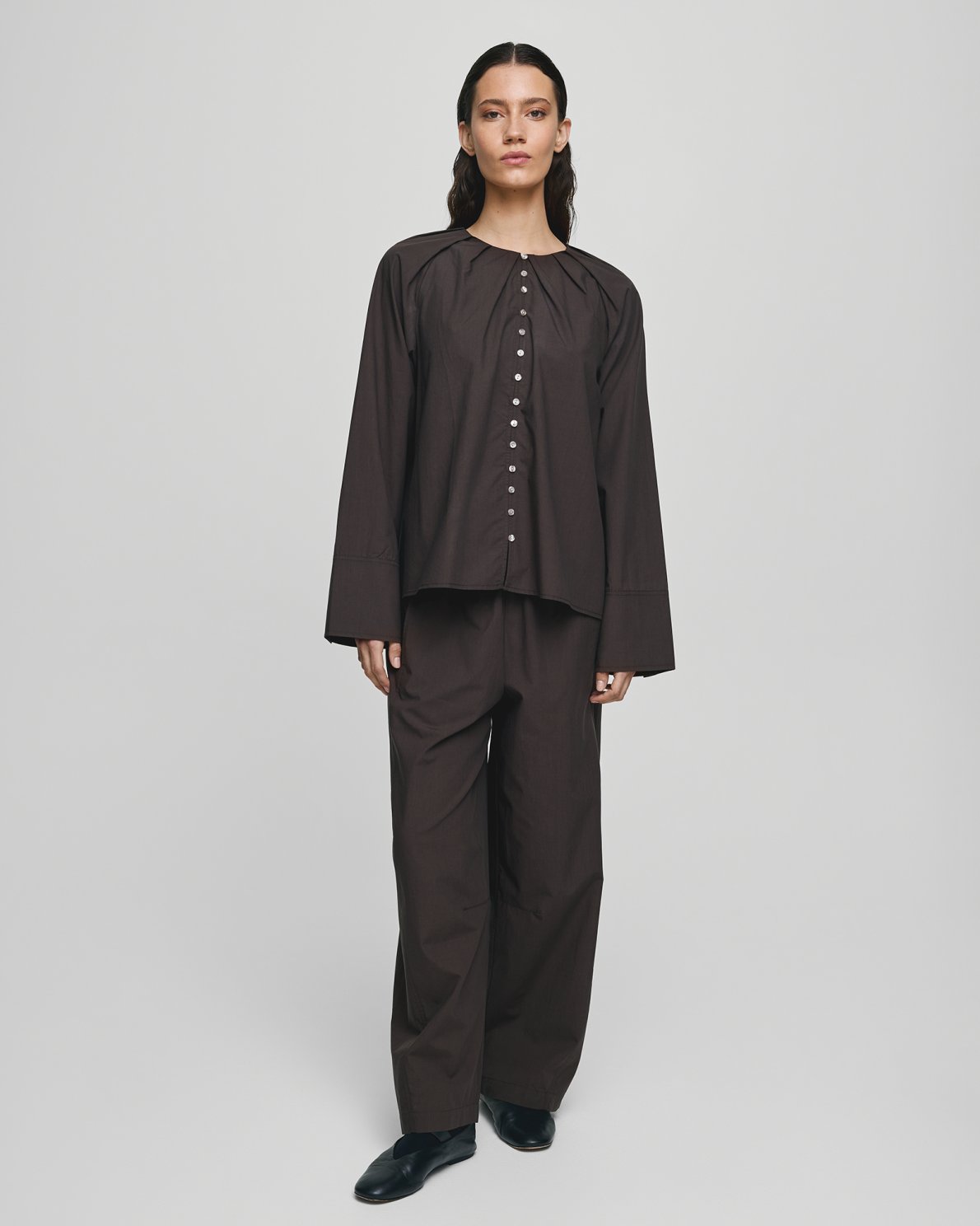 The MSCH Selmina Pleat Shirt is an elegant blouse with long sleeves and a classic button-down front. Delicate pleat details at the shoulders add a feminine and sophisticated touch, while the lightweight fabric ensures all-day comfort. In a deep brown shade, it's easy to style – pair it with jeans for a relaxed everyday look or with tailored trousers and a blazer for a polished outfit.