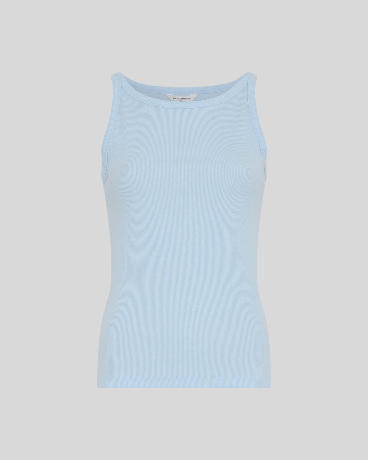 Ribbed tank top in soft cotton quality with stretch. Designed with a round neckline and sleeveless silhouette. Slim fit.