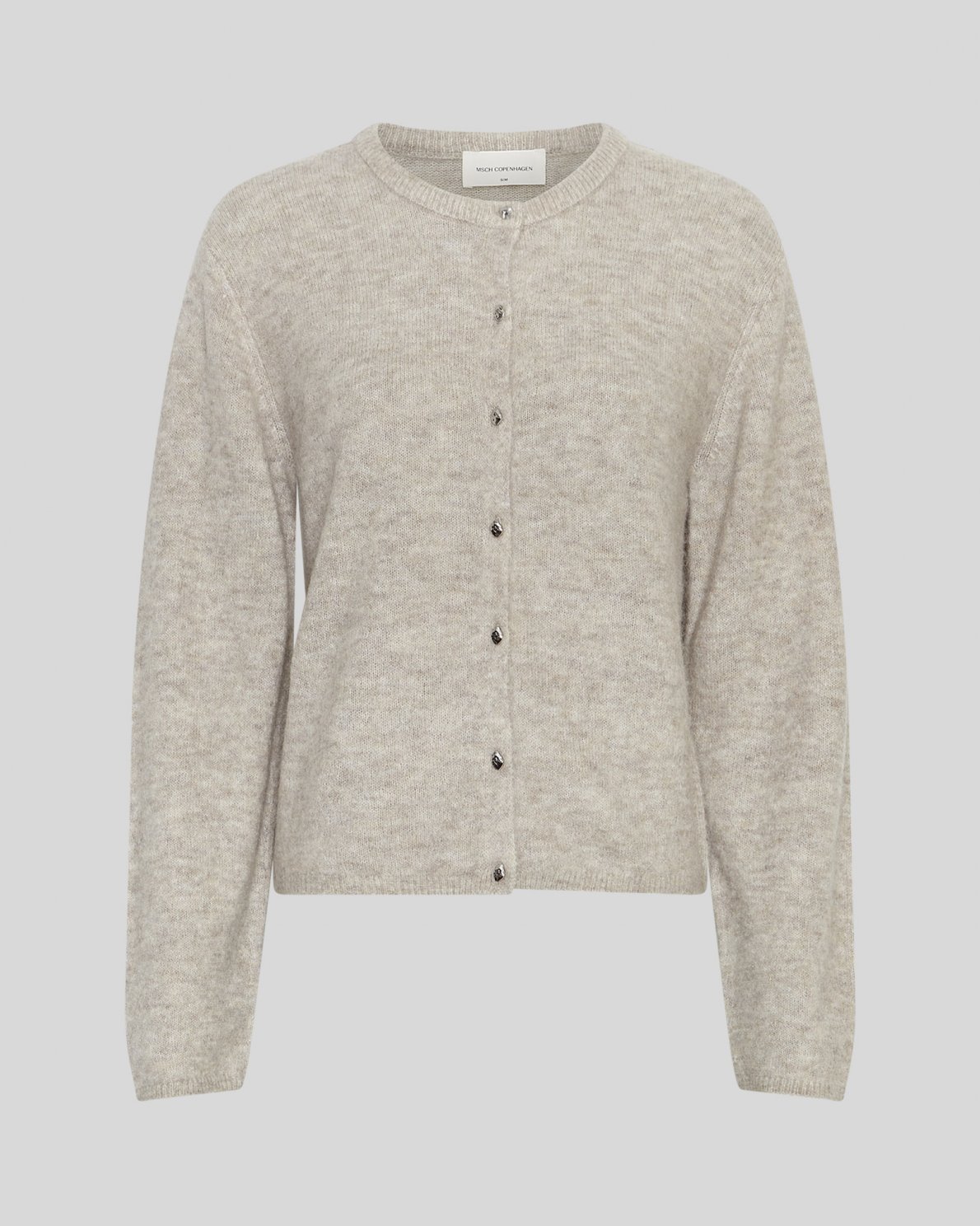 MSCHKellsey Allegria cardigan is a woollen knitted cardigan, with a round neckline and small silver buttons.