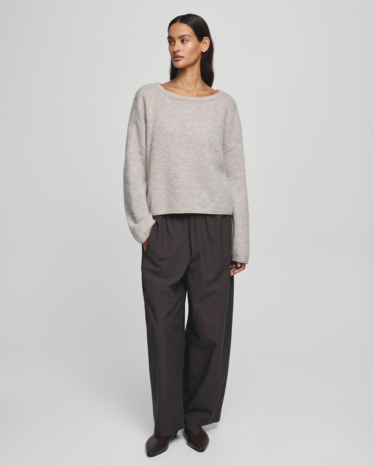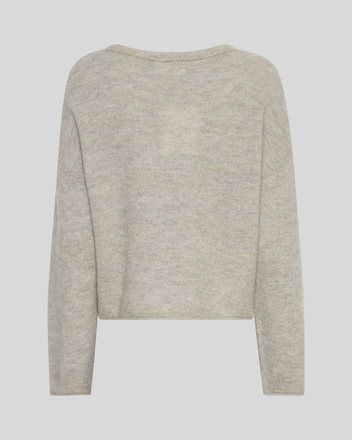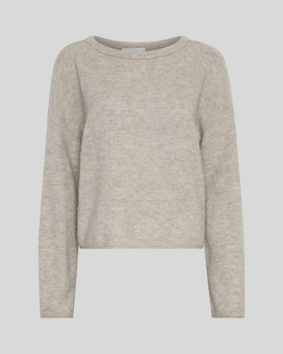The MSCHKellsey Alegria pullover is a soft, wollen pullover in a boxy shape with a wide boat neck to make it more feminine. It features long sleeves, small ribbed edges and dropped shoulders.