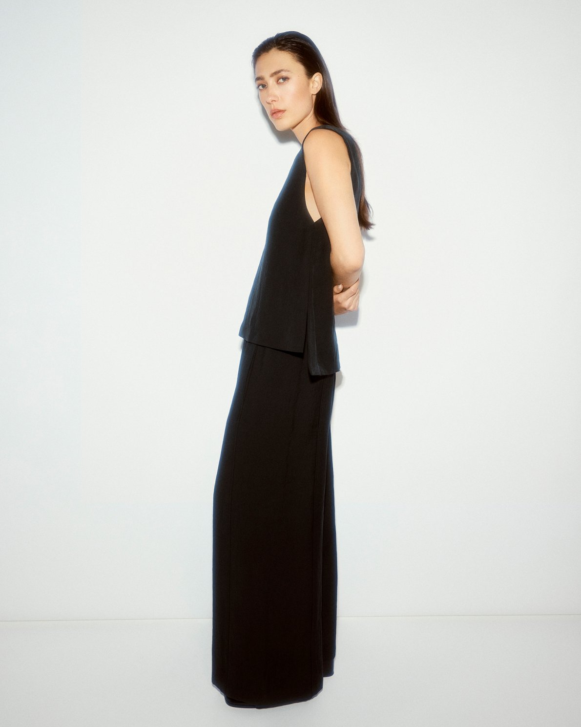 MSCHManny pants is a wide legged pull-up pant with an elastic waistband. They feature cutline details and side pockets.