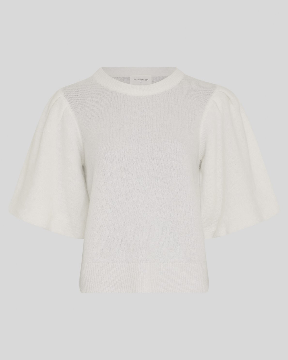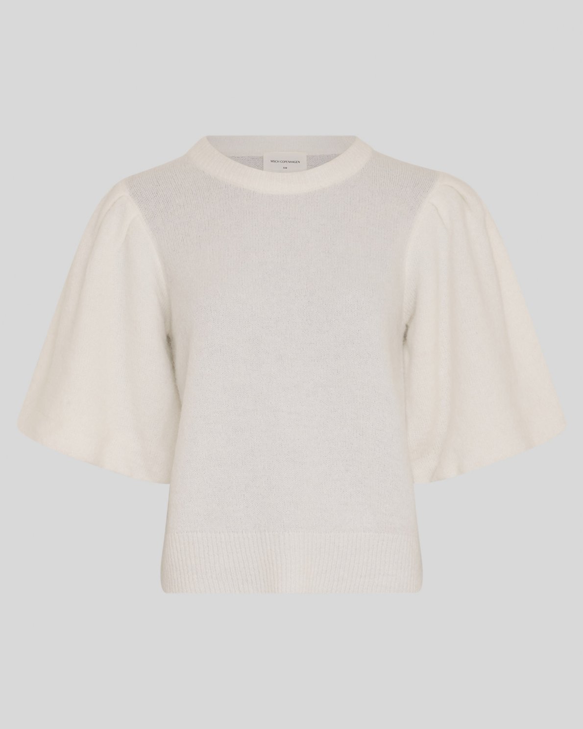 Knitted pullover with a round neckline and short puff sleeves. Designed in a soft, lightweight knit with ribbed edges for a relaxed and feminine look.