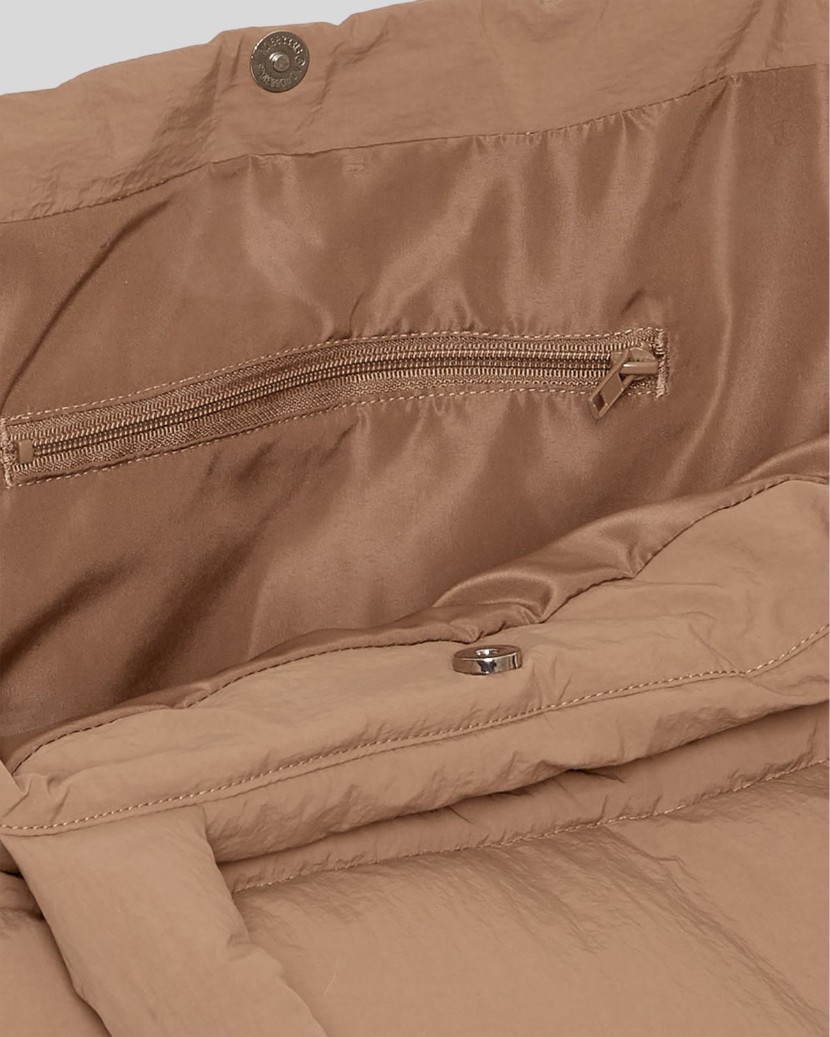Padded shopper bag with a spacious main compartment. The bag features wide shoulder straps, an inner zip pocket and snap button closure.