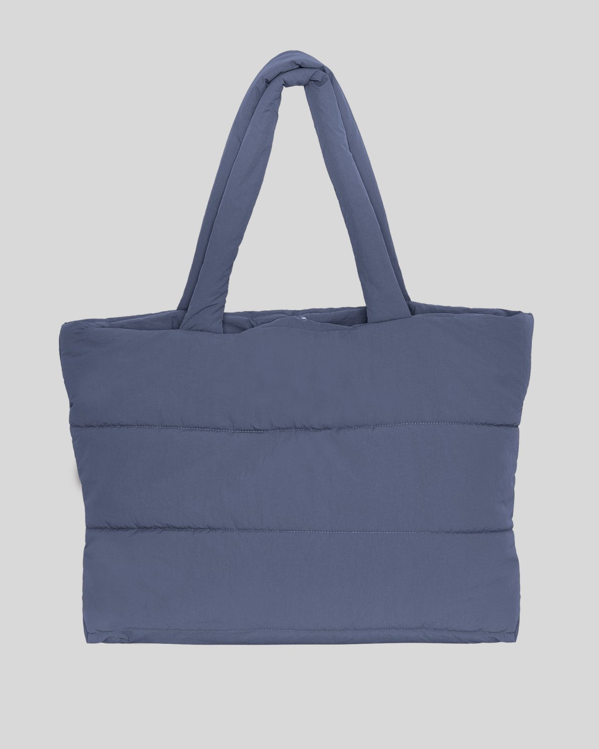 Padded shopper bag with a spacious main compartment. The bag features wide shoulder straps, an inner zip pocket and snap button closure.
