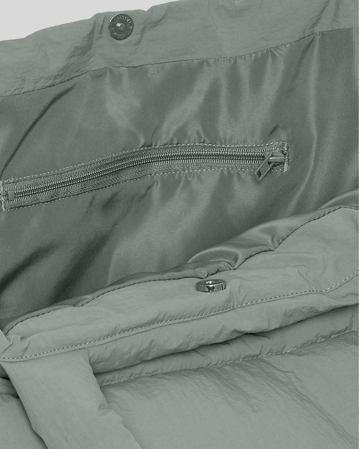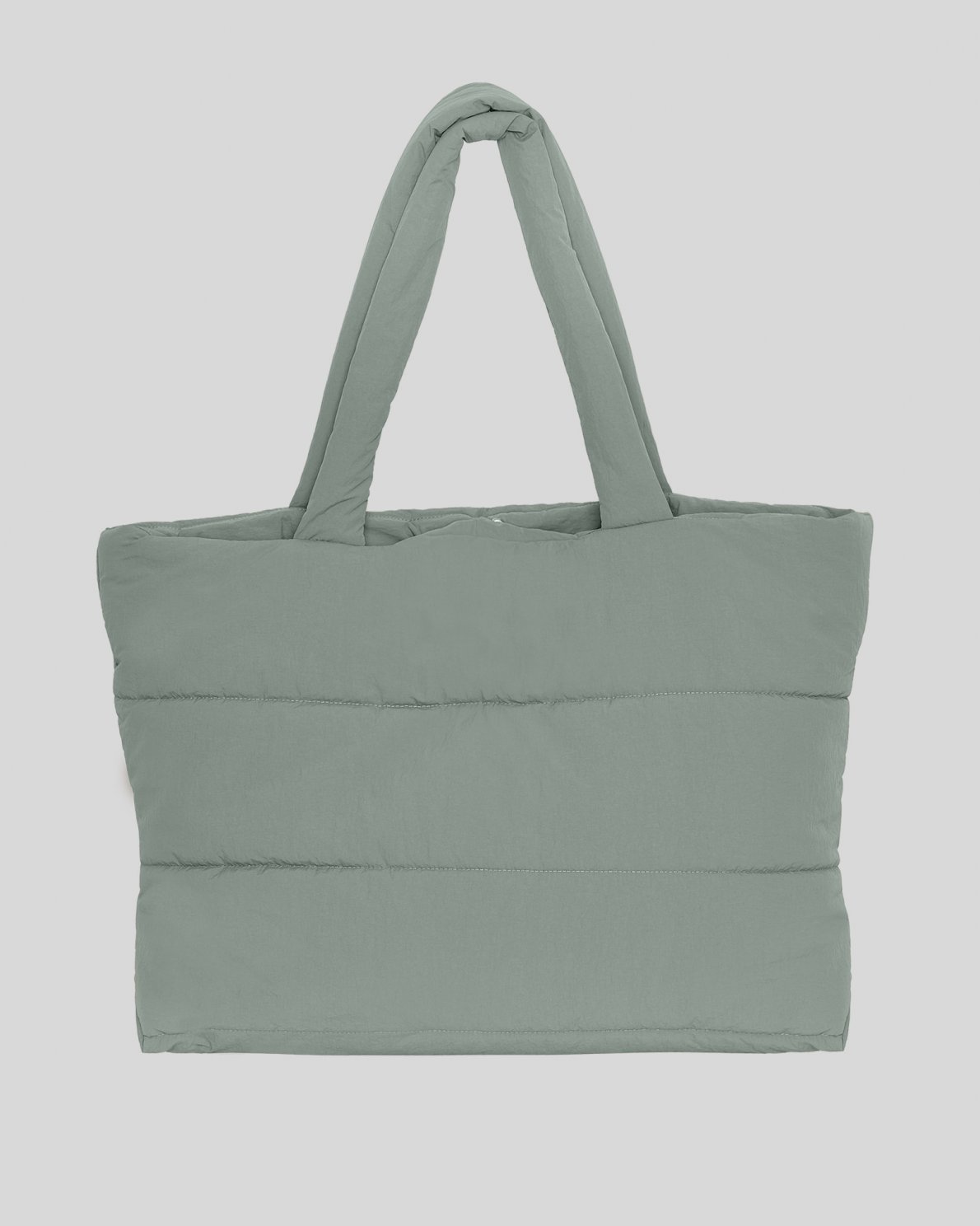 Padded shopper bag with a spacious main compartment. The bag features wide shoulder straps, an inner zip pocket and snap button closure.