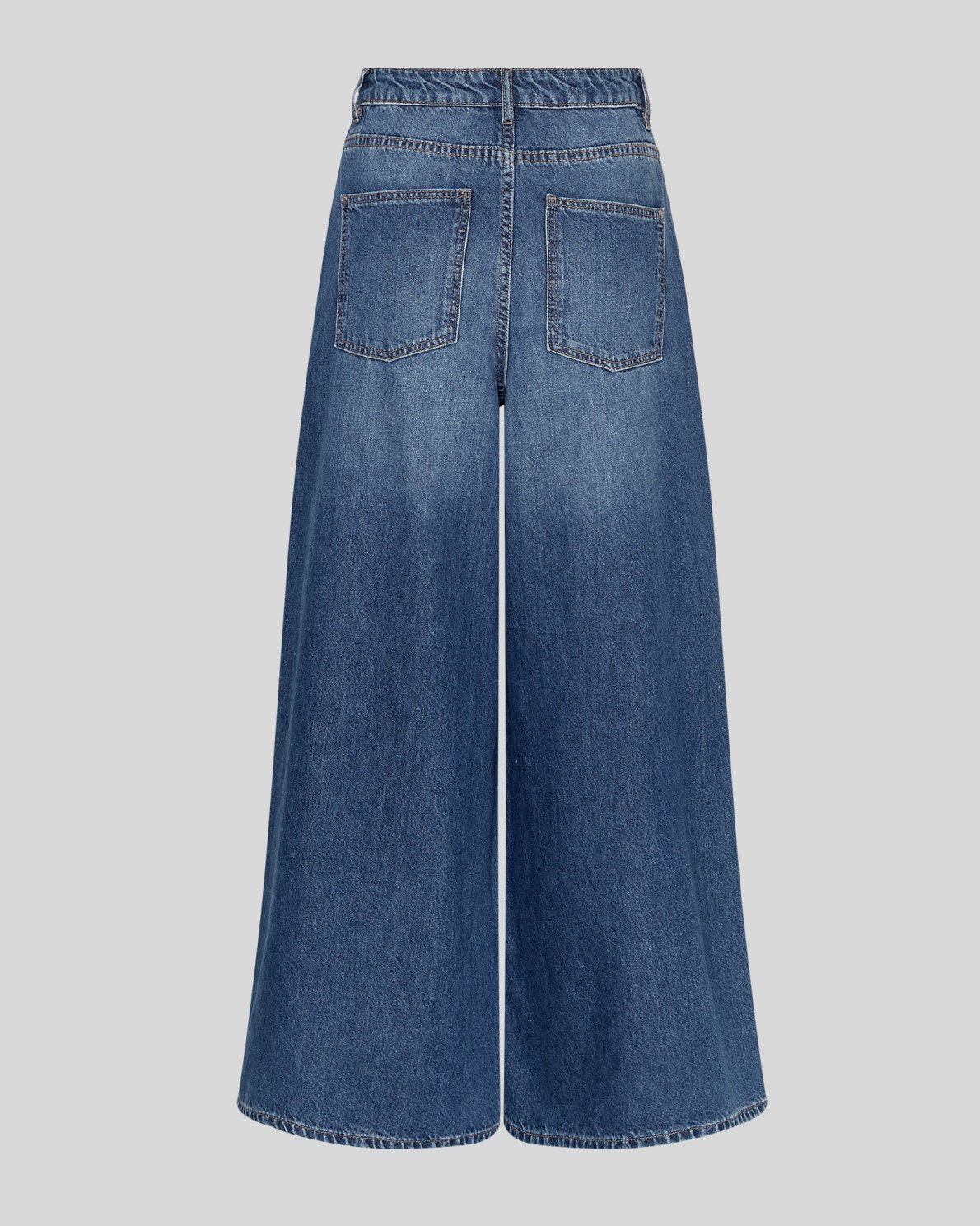 Jeans with extra wide legs in a structured denim quality. Designed with a regular waist, front and back pockets, and zip and button closure. Straight silhouette with full length.