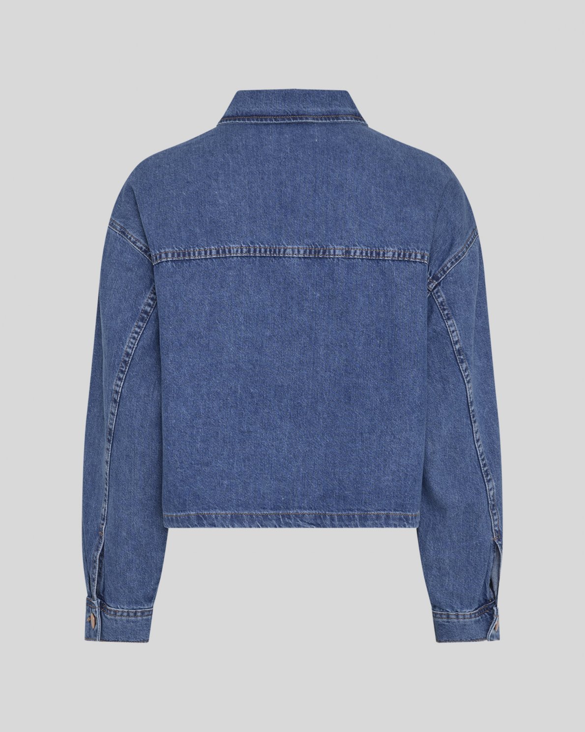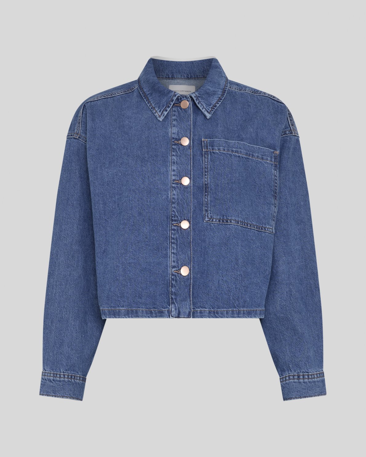 Denim shirt jacket in 100% cotton. Designed with a classic collar, button closure at front and one large chest pocket. Long sleeves with cuffs and button fastening. Slightly boxy silhouette.
