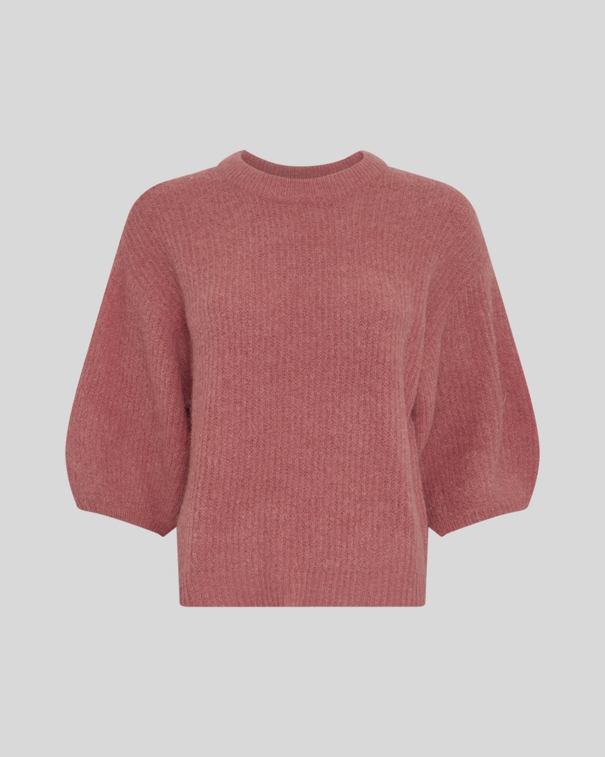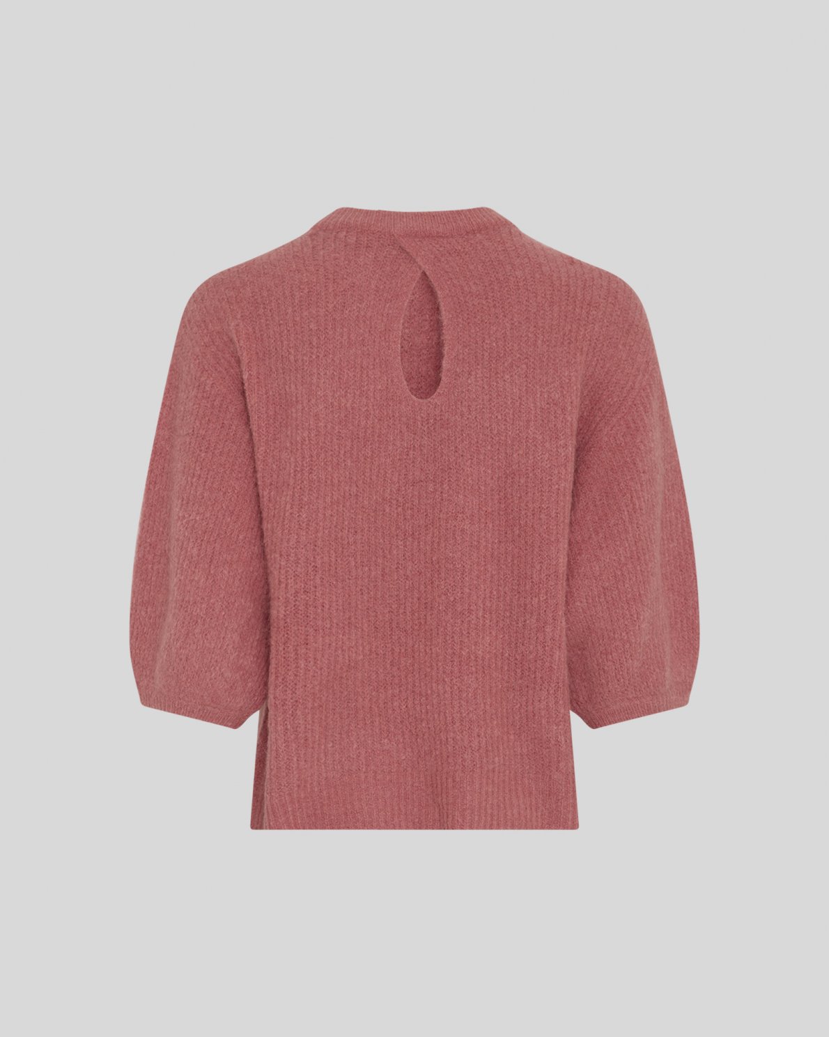 Knitted pullover with round neckline and 2/4 sleeves. Designed with dropped shoulders and keyhole detail at the back neck. Ribbed structure and regular fit.