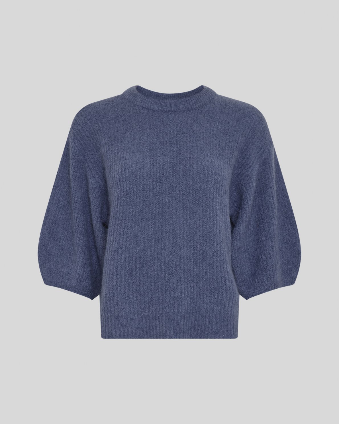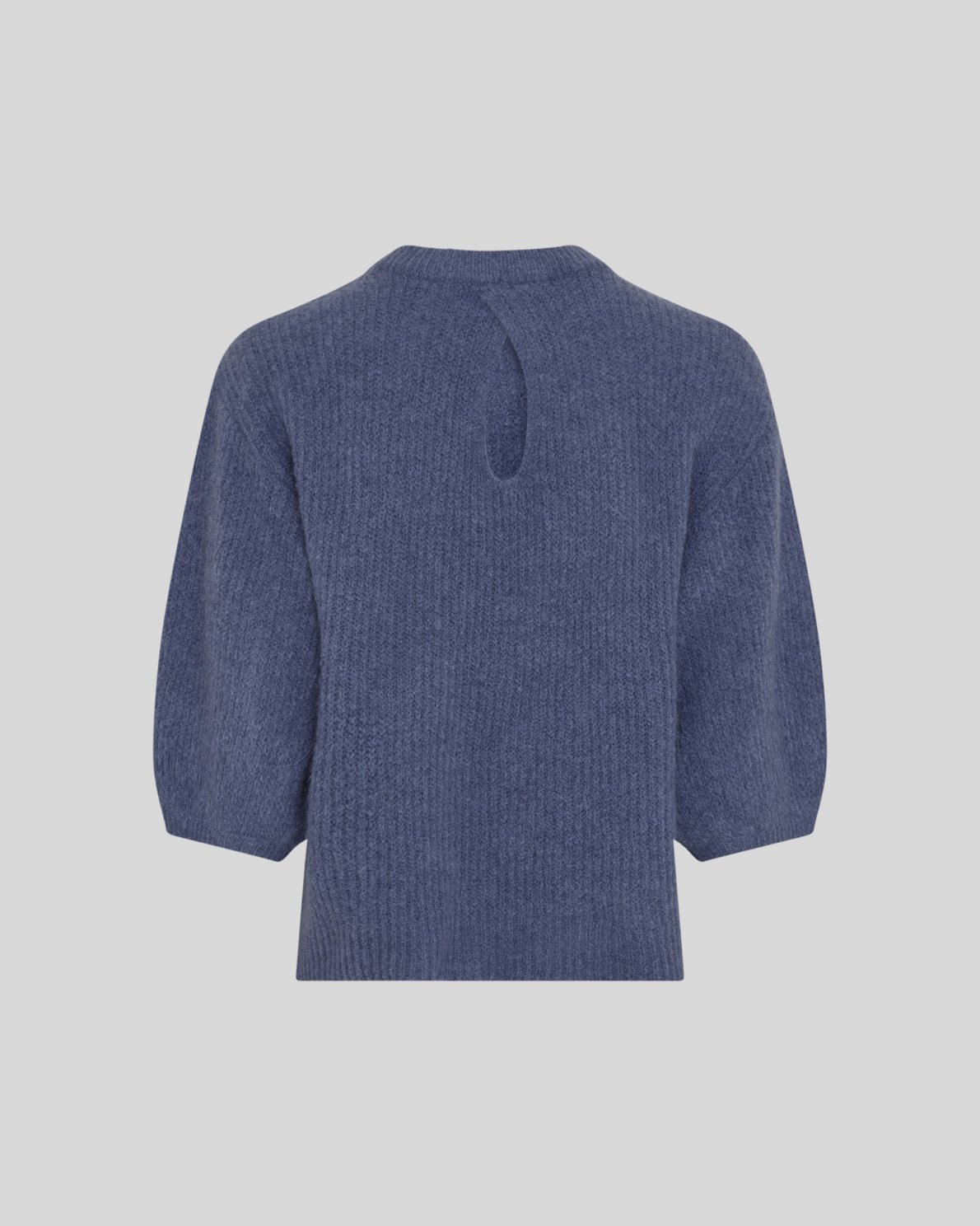 Knitted pullover with round neckline and 2/4 sleeves. Designed with dropped shoulders and keyhole detail at the back neck. Ribbed structure and regular fit.