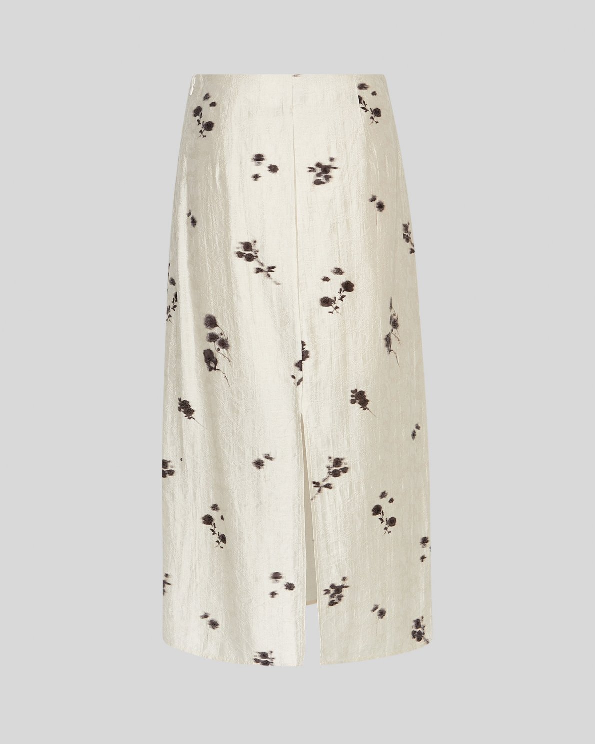 MSCH COPENHAGEN Rianne Skirt is a mid-length skirt with an all-over floral print. Designed with a side zipper closure and a back slit for ease of movement. Fully lined.