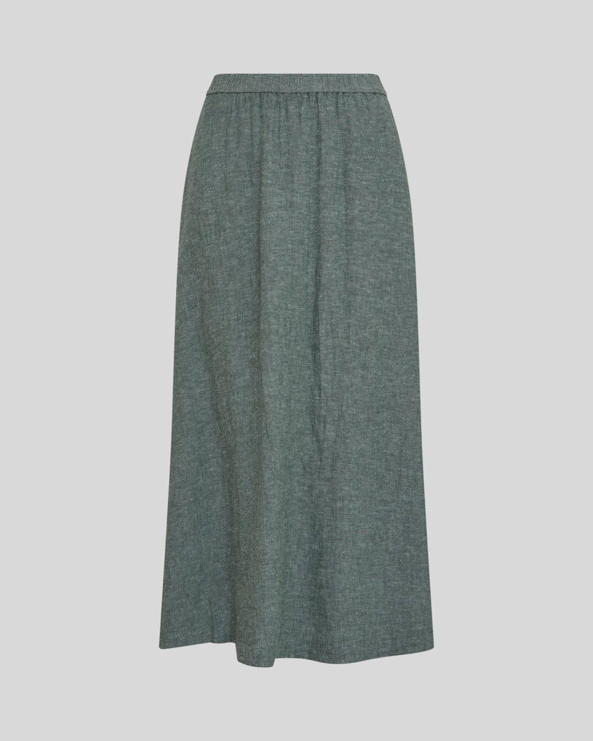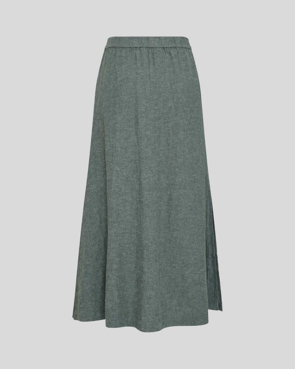 Midi-length A-line skirt in a linen and viscose blend. High-waist design with elastic waistband. Flowing silhouette with side slit. Regular fit.