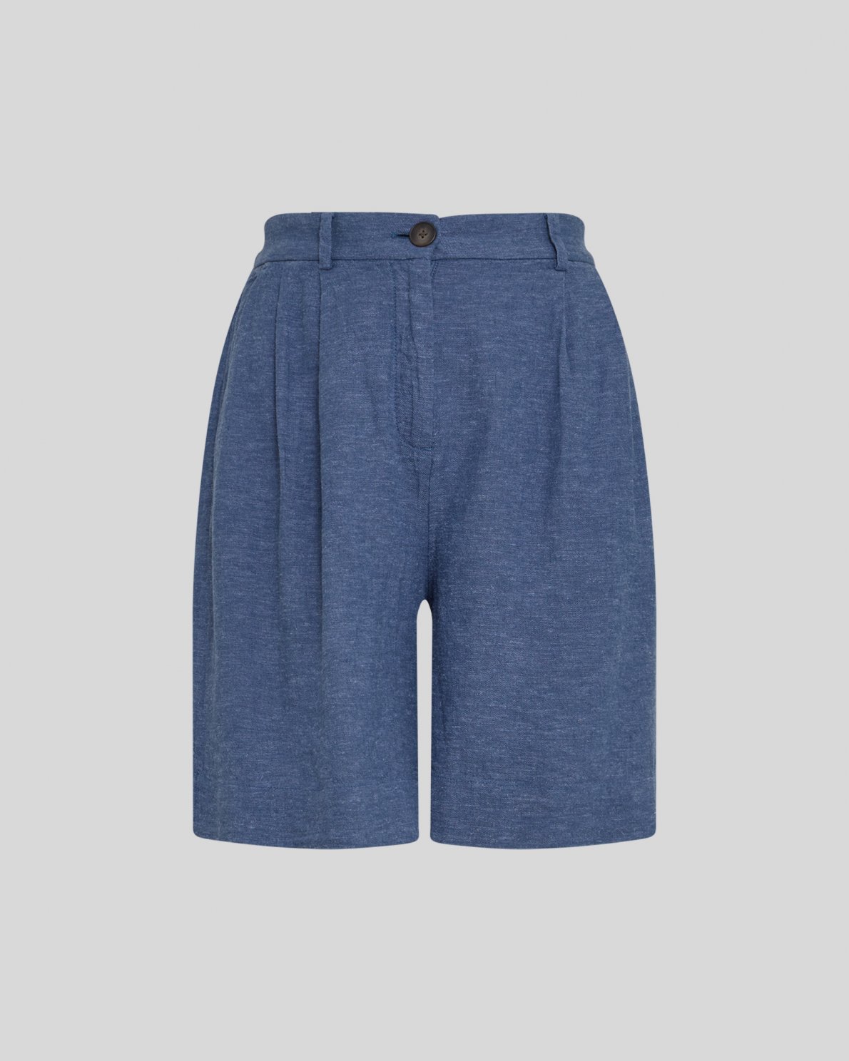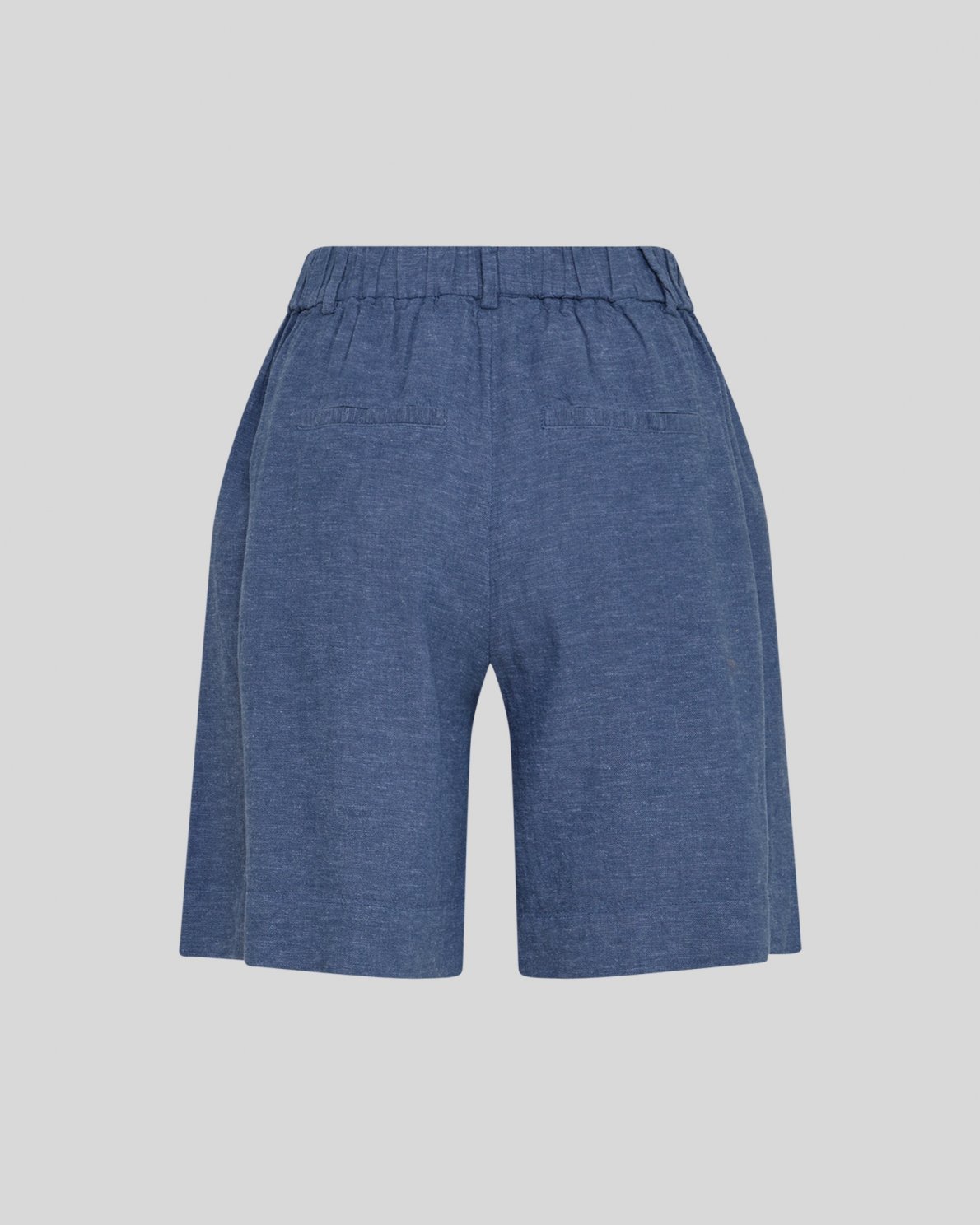 Loose shorts in a linen blend with button and zip closure. Elasticated waistband at the back. Faux back pockets. Straight silhouette.