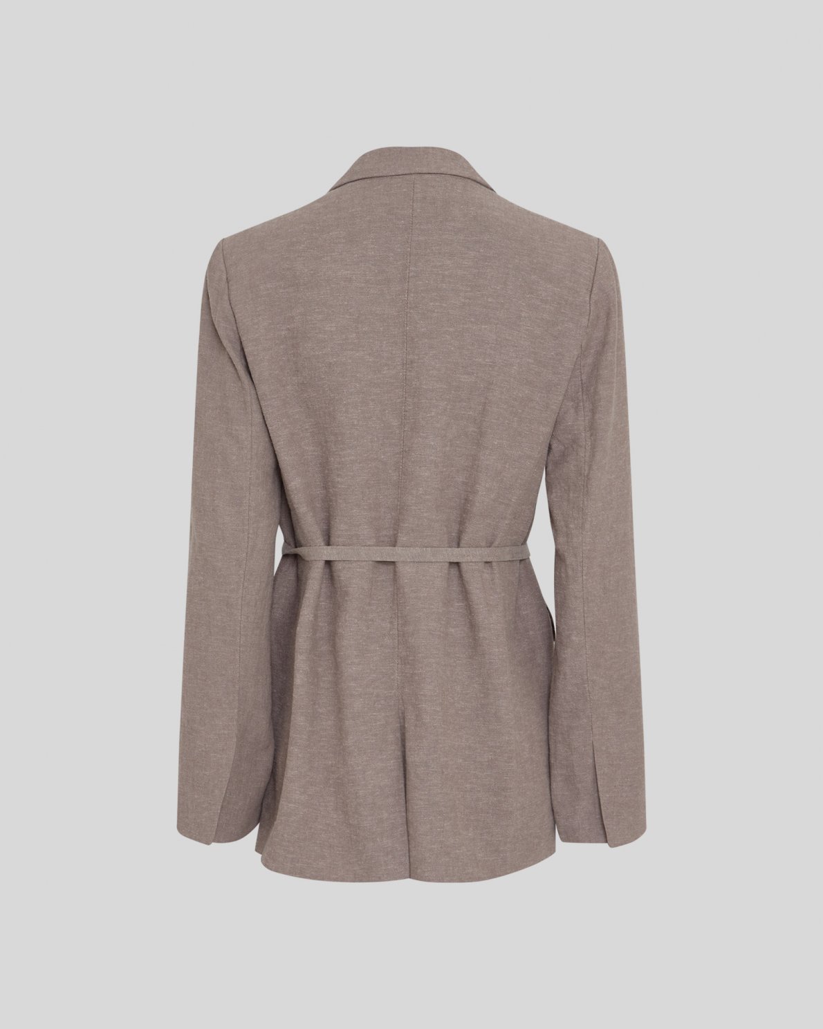 Blazer i hørblanding med reverskrave. Designet med aftageligt bindebånd i taljen, som giver mulighed for justerbar pasform. Lukkes med knap foran og har to frontlommer. Fuldt foret.