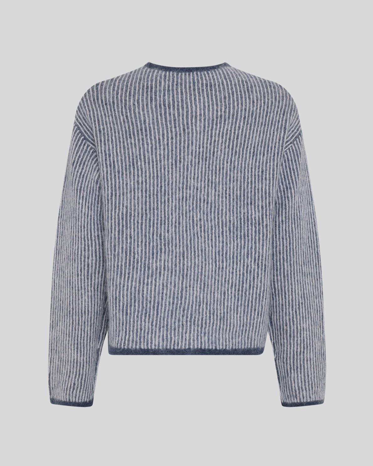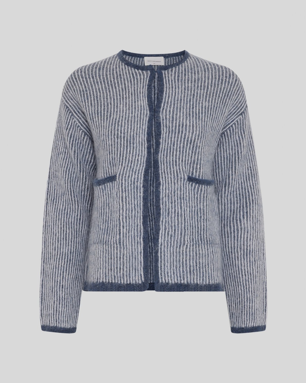 Knitted wool cardigan with vertical stripes, a round neckline, front closure and front patch pockets. Designed in a soft quality with light texture.