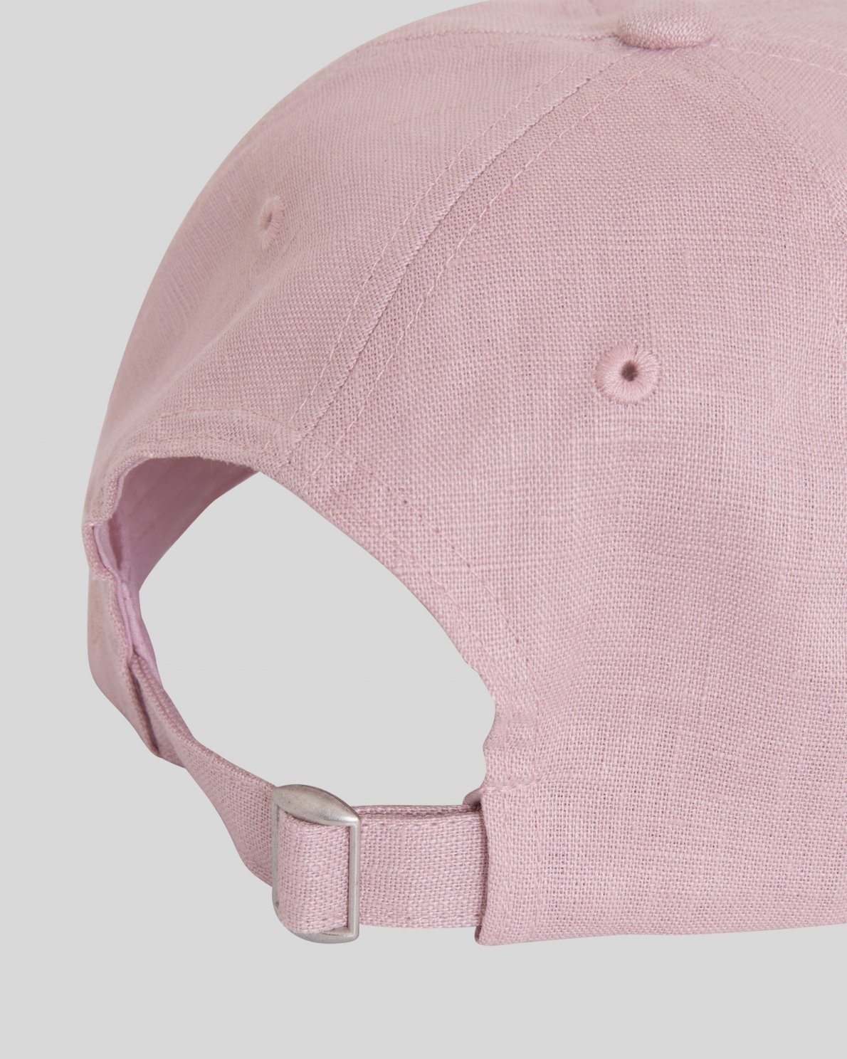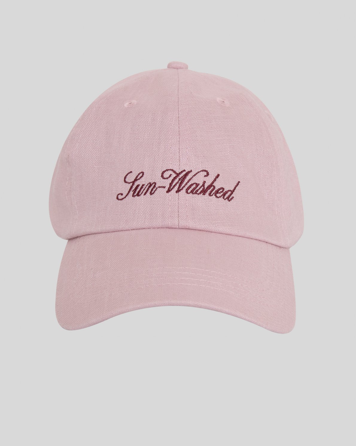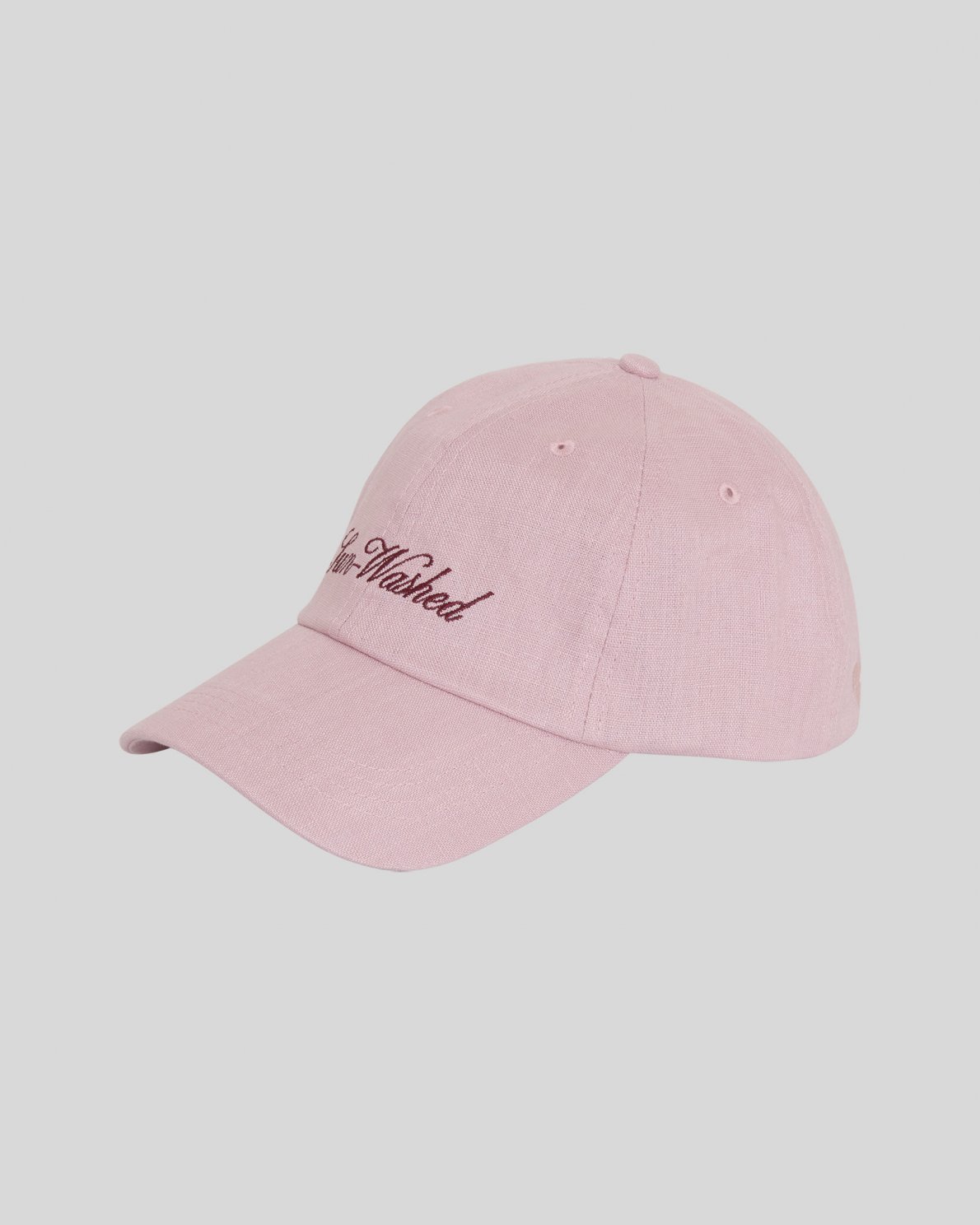 Cap in linen with curved brim. Designed with six panels and ventilation eyelets. Adjustable back strap with metal buckle. Embroidered text at front.