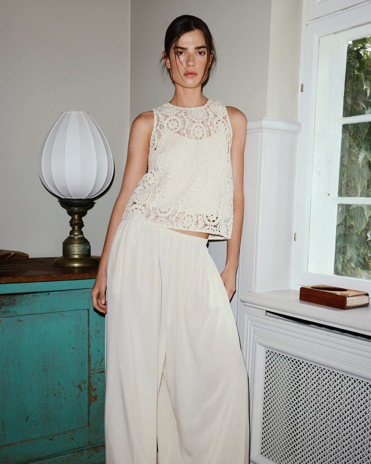Loose-fit trousers in a lightweight woven quality. Designed with elastic waistband and wide silhouette. Ankle-length legs with elastic hem. Soft and fluid material structure.