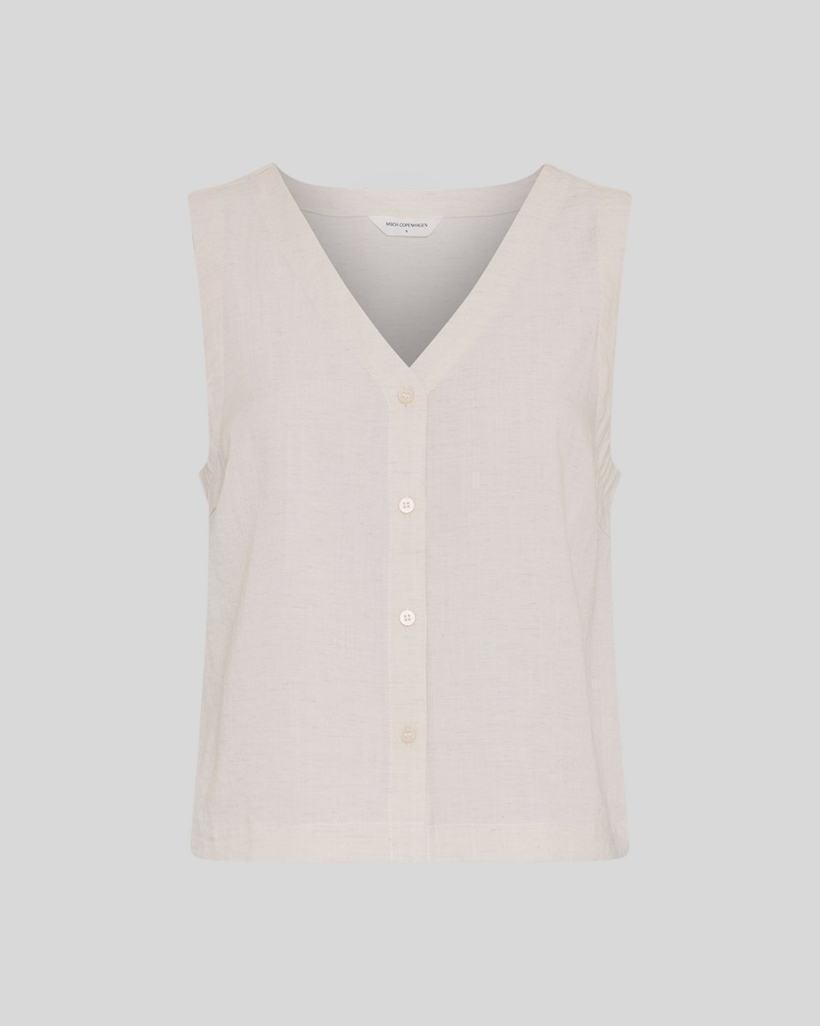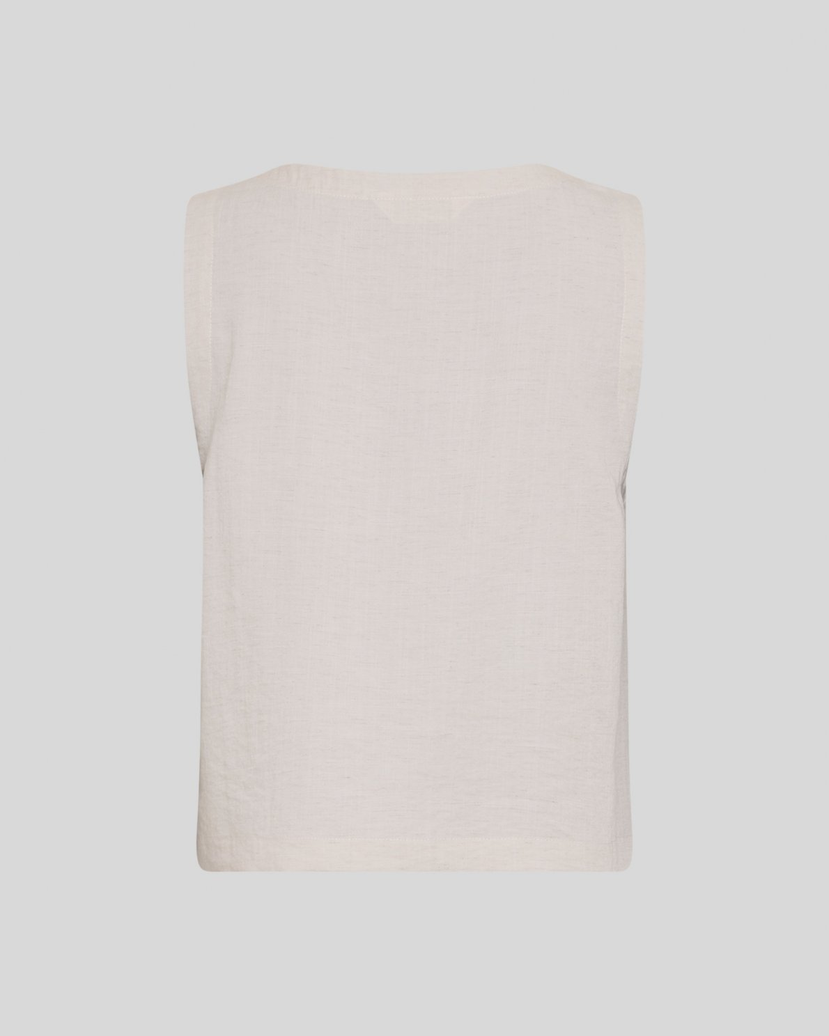 Sleeveless shirt in lightweight woven quality. Designed with V-neckline and button closure at the front. Straight silhouette with subtle fabric texture.