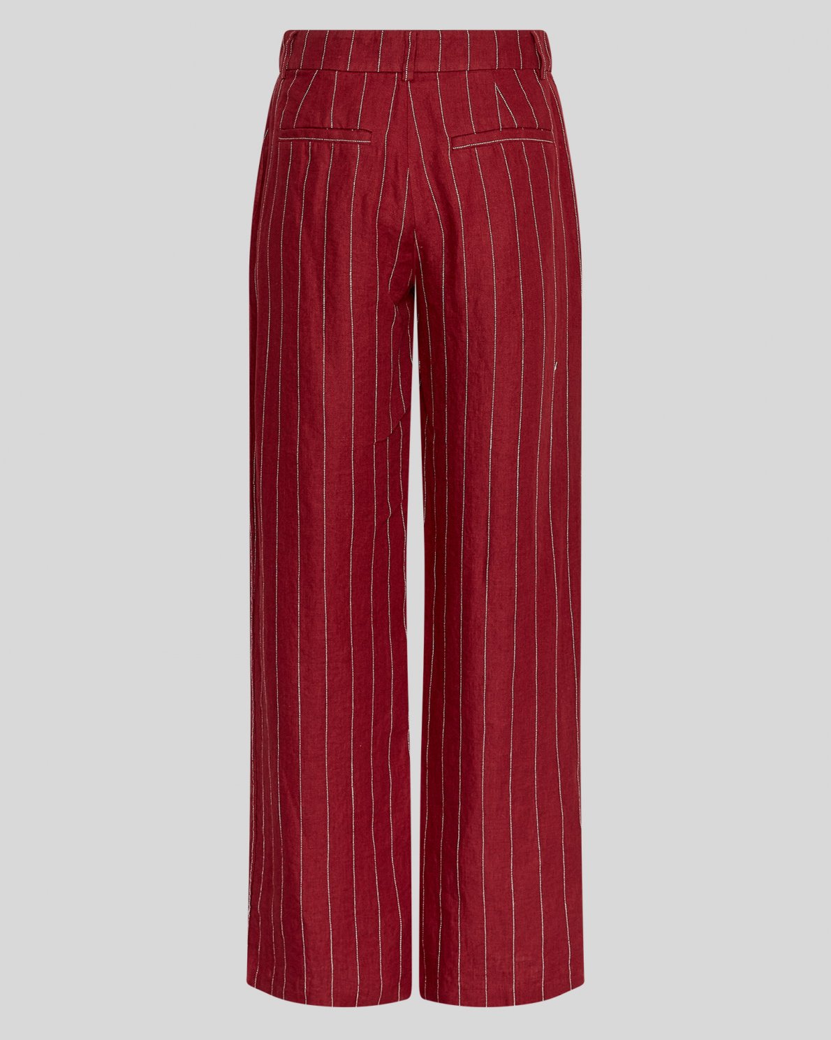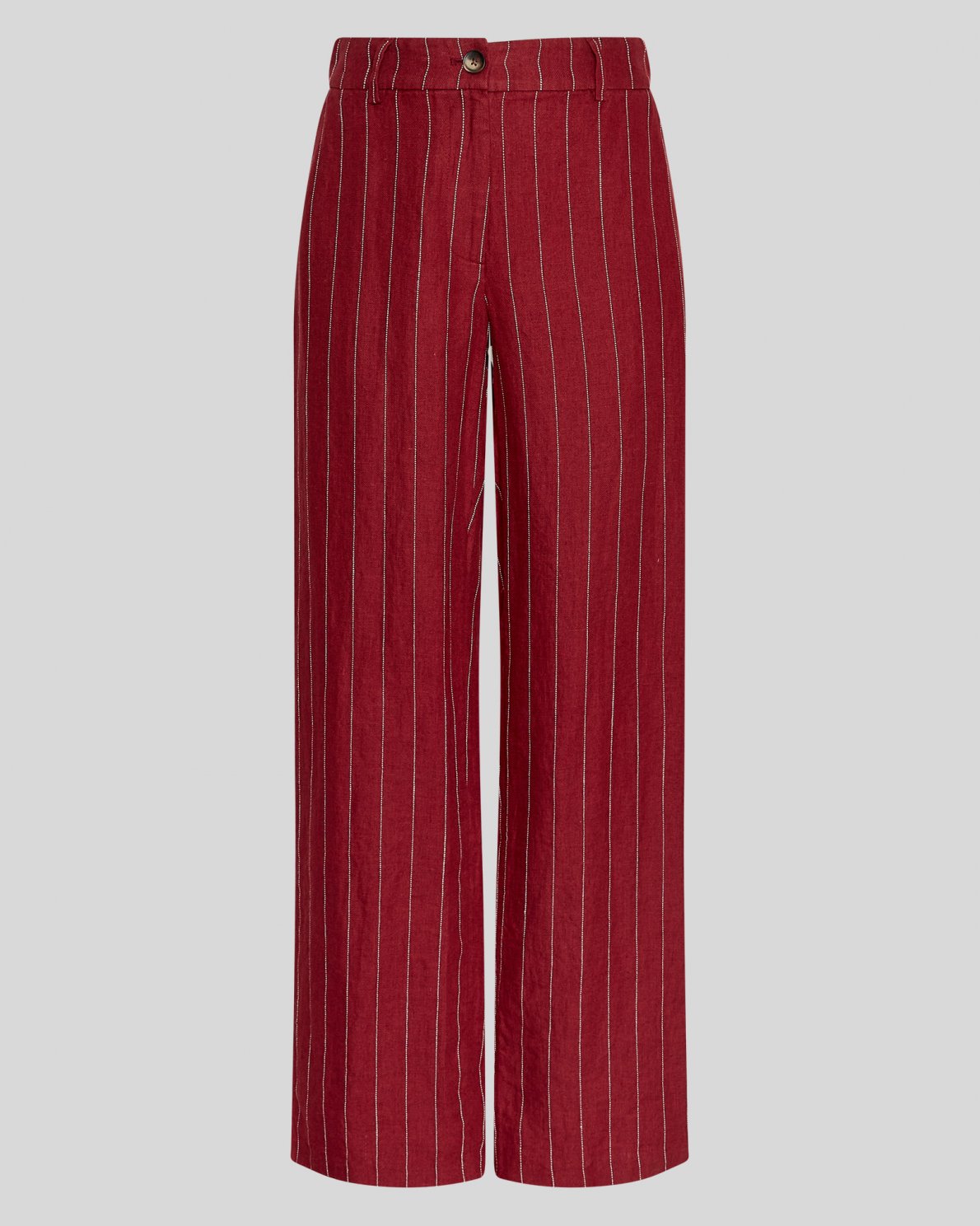 Trousers with vertical stripes, a normal waist, belt loops and straight legs. Designed with a front closure and a lightly structured quality.