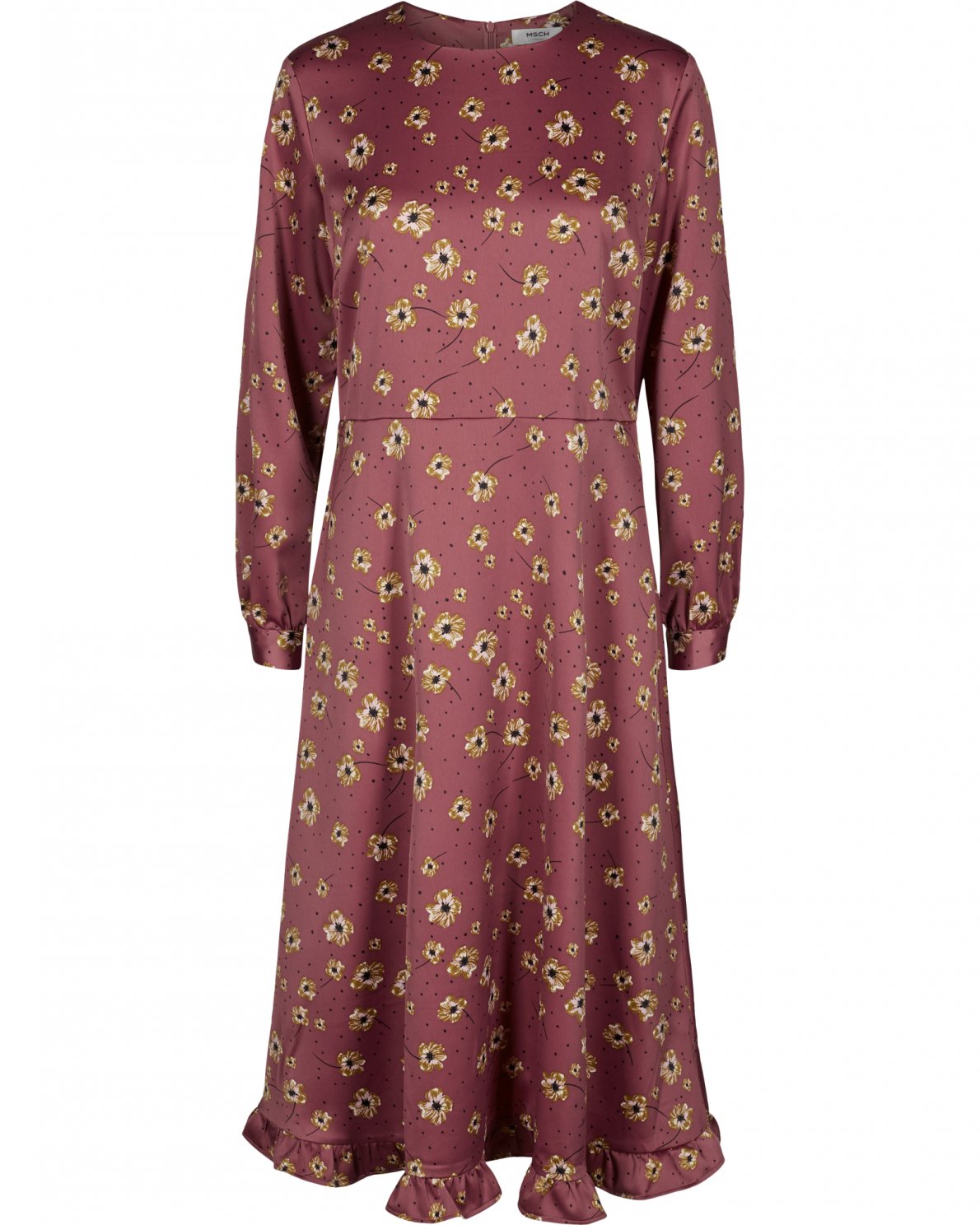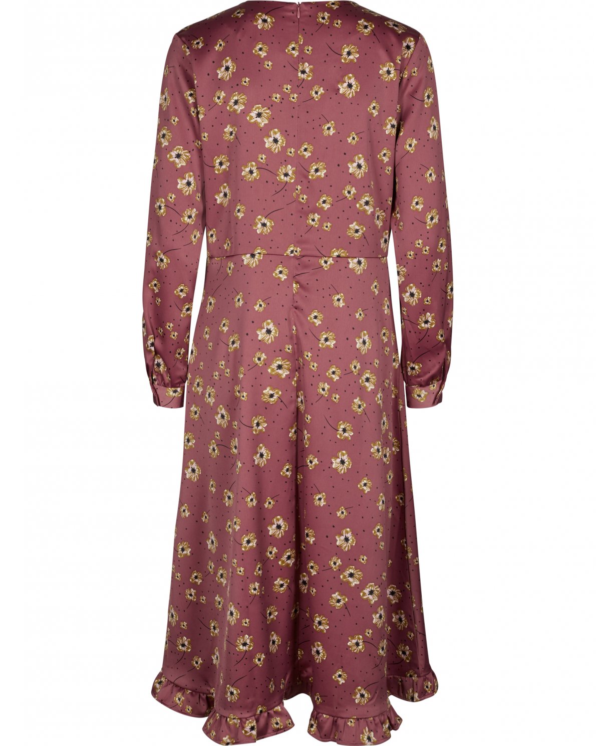Under knee AOP dress with frill effect and zip in the back